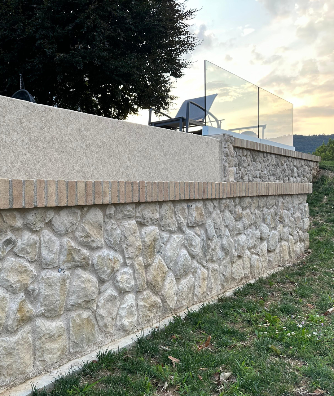 Particolare attenzione è stata dedicata alla zona a sfioro, rivestita in pietra naturale: una scelta che esalta l’effetto scenografico dell’acqua e dona carattere all’intero progetto. Il contrasto tra la superficie lapidea e il movimento dell’acqua crea un equilibrio raffinato, capace di trasformare la piscina in un vero elemento architettonico.