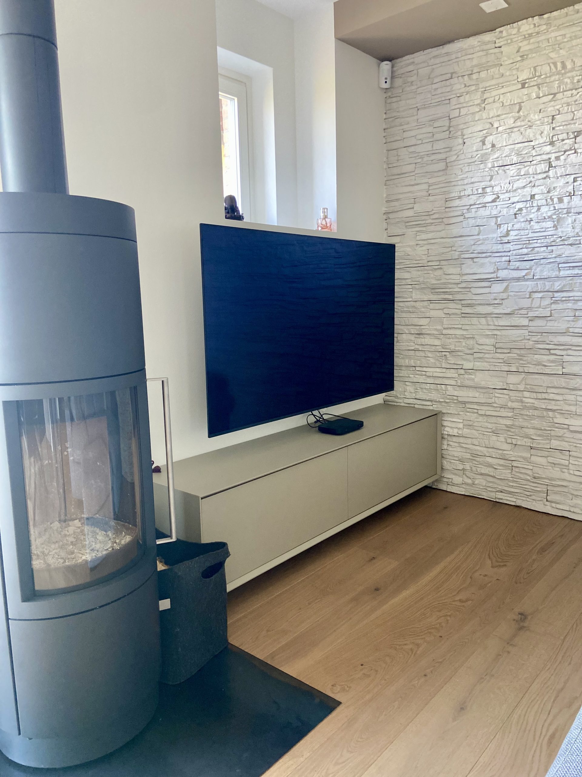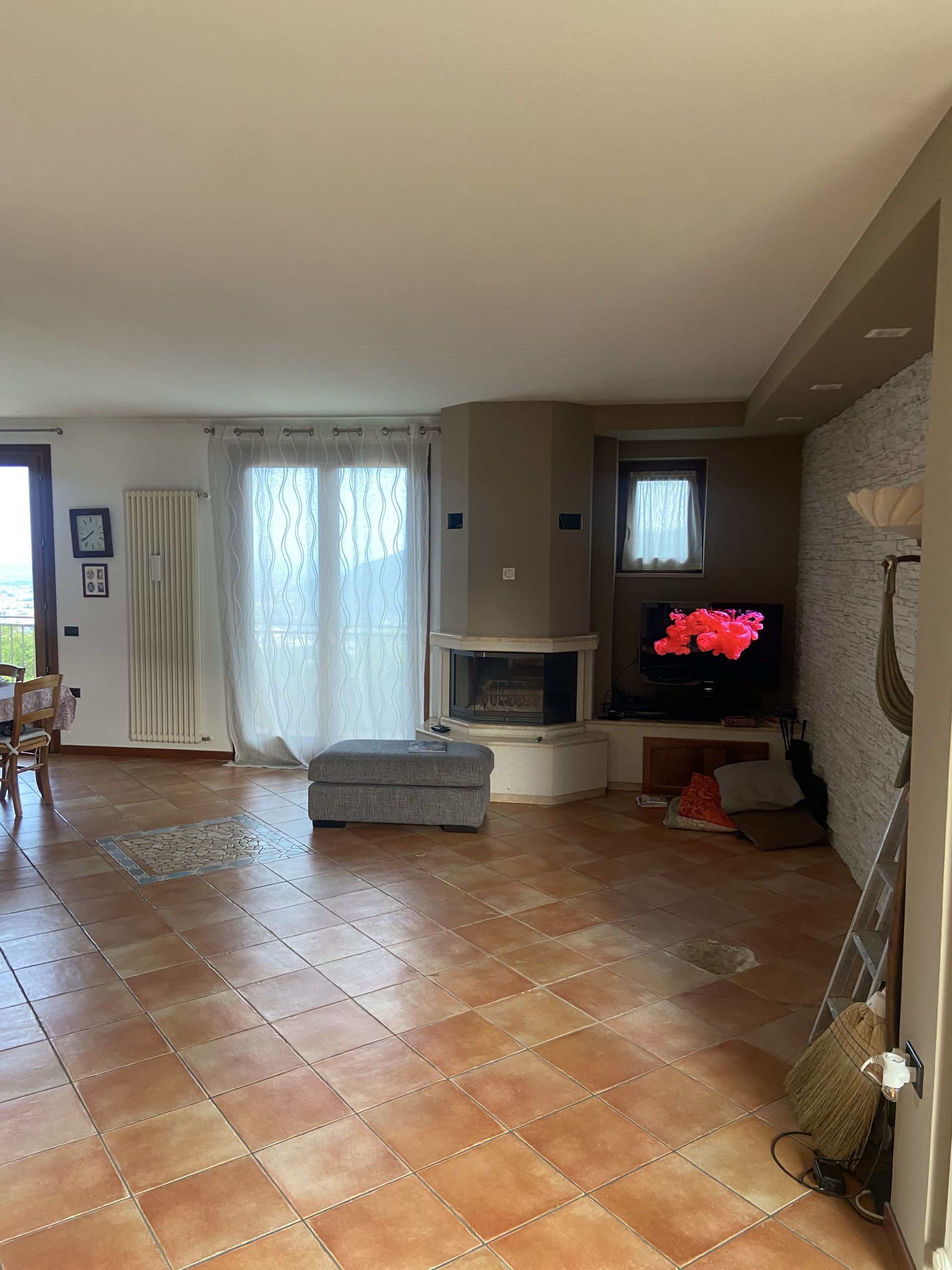 Nello specifico abbiamo abbattuto parzialmente alcune pareti e ne abbiamo realizzate di altre per creare spazi aperti e più vivibili, rinnovato gli impianti per garantire comfort e sicurezza, scelto un pavimento in legno per aggiungere calore e stile, sostituito il caminetto con una moderna stufa a legna, perfetta per scaldare l’atmosfera con un tocco di design e completato con arredi coordinati per un look elegante e contemporaneo.