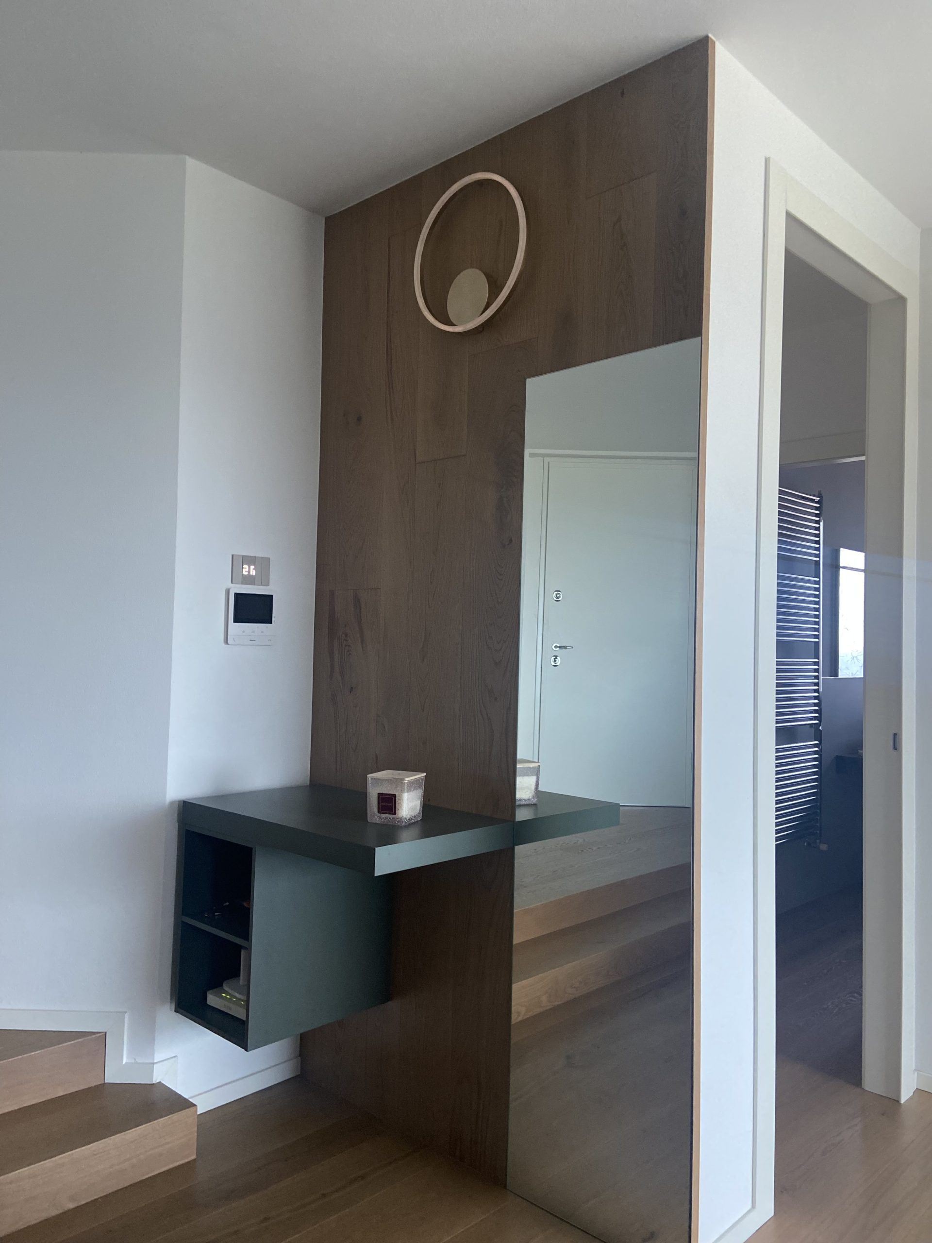 La progettazione su misura, attenta alle esigenze specifiche del cliente, ha dato vita a un’open space a dir poco straordinario. Il nuovo pavimento in legno multiformato nodato dona carattere e autenticità, valorizzando ogni ambiente con il suo fascino naturale e la sua texture unica. L’arredamento moderno unisce design e funzionalità: linee pulite, materiali pregiati e spazi ottimizzati per una casa che rispecchia uno stile contemporaneo e senza tempo. Ogni dettaglio è pensato per valorizzare l’ambiente, rendendolo accogliente, elegante e perfetto per vivere il quotidiano con praticità e stile.